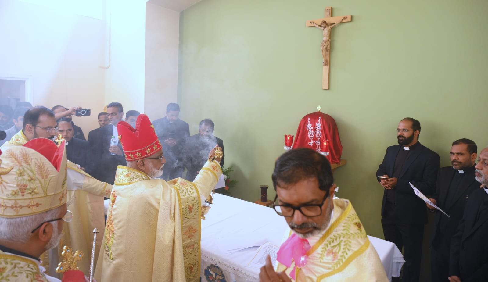 ഗ്രേറ്റ് ബ്രിട്ടൻ രൂപതയുടെ ആസ്ഥാന മന്ദിരം മാർ റാഫേൽ തട്ടിൽ ആശീർവദിച്ചു. ദൈവാനുഗ്രഹത്തിന് നന്ദിയർപ്പിച്ച് മാർ സ്രാമ്പിക്കലിന്റെ നേതൃത്വത്തിൽ രൂപതാകുടുംബത്തിലെ വൈദികരും സന്യസ്തരും അത്മായ സമൂഹവും.