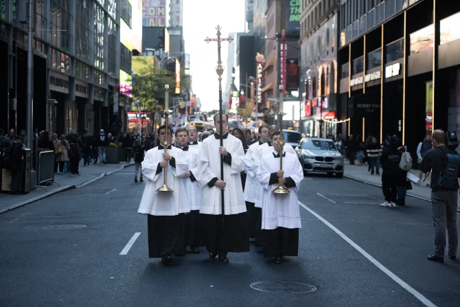 ന്യൂയോർക്ക് നഗരത്തിലെ പ്രസിദ്ധമായ സെൻ്റ് പാട്രിക് കത്തീഡ്രലിൻ്റെ മുന്നില് നിന്നും ആരംഭിച്ച ദിവ്യകാരുണ്യ പ്രദിക്ഷണത്തില് മൂവായിരത്തിയഞ്ഞൂറോളം പേരുടെ പങ്കാളിത്തം. ന്യൂയോർക്ക് സിറ്റിയിൽ നിന്നും ലോംഗ് ഐലൻഡ്, ന്യൂജേഴ്സി, വെസ്റ്റ്ചെസ്റ്റർ കൗണ്ടി എന്നിവിടങ്ങളിൽ നിന്നും വാഹനമോടിച്ച എത്തിയ നൂറുകണക്കിനാളുകളാണ് ദിവ്യകാരുണ്യ പ്രദക്ഷിണത്തിനായി തെരുവിലിറങ്ങിയത്. കാലിഫോർണിയ ആസ്ഥാനമായുള്ള നാപ്പ ഇൻസ്റ്റിറ്റ്യൂട്ട് സംഘടിപ്പിച്ച ദിവ്യകാരുണ്യ പ്രദിക്ഷണത്തില്, ന്യൂയോർക്ക് സിറ്റി ഓക്സിലറി ബിഷപ്പ് ജോസഫ് എസ്പില്ലത്ത്, ഒക്ലഹോമ സിറ്റി ആർച്ച് ബിഷപ്പ് പോൾ കോക്ക്ലി, സർവ്വകലാശാലയുടെ പ്രസിഡൻ്റ് മോൺസിഞ്ഞോർ ജെയിംസ് ഷീ എന്നിവരും പങ്കുചേര്ന്നു.