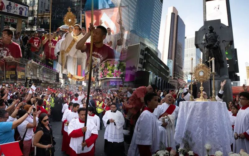 കത്തോലിക്കാ സംഘടനയായ നാപ്പ ഇൻസ്റ്റിറ്റ്യൂട്ട് സംഘടിപ്പിച്ച ന്യൂയോർക്ക് സിറ്റിയിലെ അഞ്ചാം വാർഷിക ദിവ്യകാരുണ്യ പ്രദിക്ഷണമാണിത്. റേഡിയോ സിറ്റി മ്യൂസിക് ഹാളിൽ നിന്ന് ദിവ്യകാരുണ്യ നാഥന്റെ രാജകീയ യാത്ര ടൈംസ് സ്ക്വയറിലേക്കും പരിസര പ്രദേശങ്ങളിലേക്കും നീണ്ടു. ദിവ്യകാരുണ്യ പ്രദിക്ഷണത്തിനു മുന്നോടിയായി സെൻ്റ് പാട്രിക് കത്തീഡ്രലില് നടന്ന വിശുദ്ധ കുര്ബാന അര്പ്പണത്തില് നിരവധി വൈദികരും പങ്കാളികളായി. ആർച്ച് ബിഷപ്പ് പോൾ കോക്ക്ലി വിശുദ്ധ കുര്ബാന അര്പ്പണത്തില് മുഖ്യകാര്മ്മികനായി.