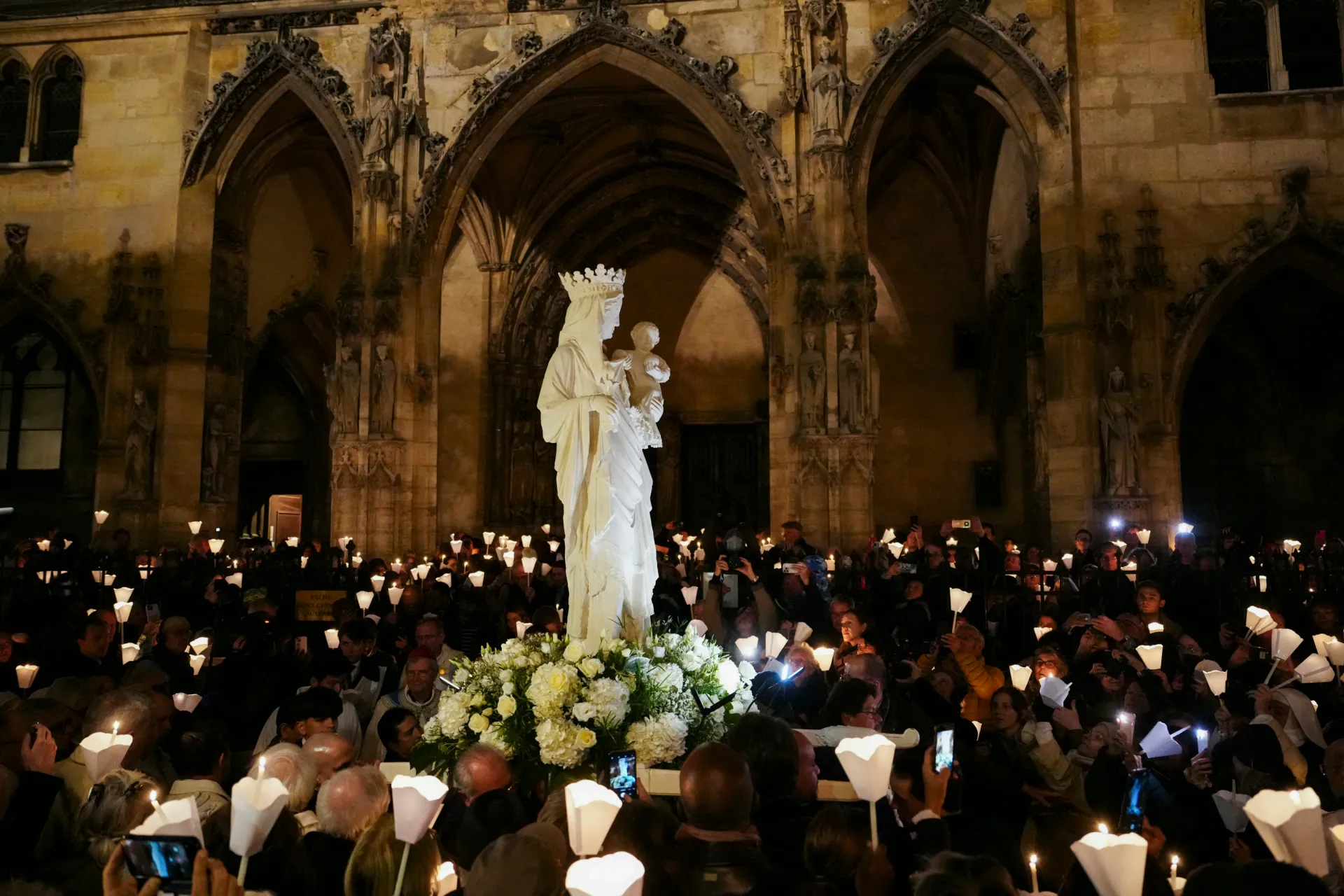 പ്രാര്ത്ഥനാനിര്ഭരമായ പ്രദിക്ഷണത്തോടെ ദൈവമാതാവിന്റെ രൂപം വീണ്ടും നോട്രഡാം കത്തീഡ്രലില്