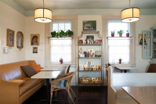 സ്ഥാപിതമായി 5 വര്ഷങ്ങള്ക്ക് ശേഷമാണ് ഇപ്പോള് നടത്തിവരുന്ന കുടുംബ മാതൃകയിലുള്ള വിശ്വാസ പ്രഘോഷം ആരംഭിച്ചത്. ചൂടന് ചായയും, കാപ്പിയും, പലഹാരങ്ങളും തേടി വരുന്ന ഈ കഫേയില് കയറി വരുന്ന ഓരോ വ്യക്തികളെയും വിശ്വാസത്തിലേക്ക് ആകര്ഷിക്കുന്ന ചിത്രങ്ങളും രൂപങ്ങളും നിരവധിയാണ്. കെട്ടിടത്തില് ഫയര്പ്ലേസിന് മുകളില് സ്ഥാപിച്ചിരിക്കുന്ന ത്രീത്വത്തിന്റെ പ്രതീകം വെറുമൊരു അടയാളം മാത്രമല്ല, "സ്വര്ഗ്ഗം നിങ്ങളുടെ ഭവനത്തില്" എന്ന ട്രിനിറ്റി ഹൗസ് കൂട്ടായ്മയുടെ സുവിശേഷ പ്രഘോഷണ ദൗത്യത്തിന്റെ ഉള്ക്കാമ്പ് കൂടിയാണ്.