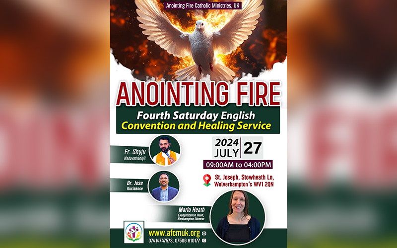 പതിവായി രണ്ടാം ശനിയാഴ്ചകളിൽ നടക്കാറുള്ള അഭിഷേകാഗ്നി മലയാളം ബൈബിൾ കൺവെൻഷൻ ഇത്തവണ മാത്രം 15ന് ശനിയാഴ്ച്ച ബർമിങ്ഹാം ബെഥേൽ സെന്റെറിൽ നടക്കും. നോർത്താംപ്റ്റൻ രൂപത ബിഷപ്പ് ഡേവിഡ് വോകലിയുടെ മുഖ്യ കാർമ്മികത്വത്തിൽ പ്രമുഖ വചന പ്രഘോഷകൻ ഫാ.സാജു ഇലഞ്ഞിയിൽ , അഭിഷേകാഗ്നി കാത്തലിക് മിനിസ്ട്രി യുകെ യുടെ നേതൃത്വം ഫാ.ഷൈജു നടുവത്താനിയിൽ എന്നിവർ കൺവെൻഷൻ നയിക്കും. കുട്ടികൾക്കും കുടുംബങ്ങൾക്കും വേണ്ടിയുള്ള ഈ അനുഗ്രഹീത സുവിശേഷവേലയിൽ പങ്കാളികളായി യേശുവിൽ രക്ഷ പ്രാപിക്കുവാൻ അനേകായിരങ്ങൾക്ക് വഴിതുറന്ന ഈ കൺവെൻഷൻ യുകെ യിൽ നവസുവിശേഷവത്ക്കരണത്തിന്റെ അടിസ്ഥാനമായി നിലകൊള്ളുകയാണ്.