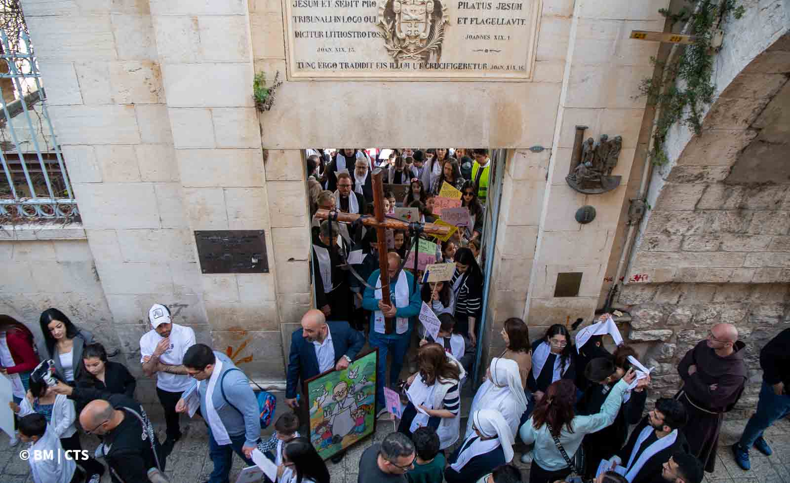 ജെറുസലേം: ഫ്രാന്സിസ് പാപ്പയ്ക്കും ലോകമെമ്പാടുമുള്ള രോഗികള്ക്കും വേണ്ടി ജെറുസലേമിലെ വിവിധ കത്തോലിക്ക സ്കൂളുകളിലെ വിദ്യാര്ത്ഥികള് കുരിശിന്റെ വഴി പ്രാര്ത്ഥന നടത്തി. മാർച്ച് 14 വെള്ളിയാഴ്ച വിശുദ്ധ നഗരത്തിലെ തെരുവില് കുരിശിന്റെ വഴി വീഥിയില് പ്ലക്കാർഡുകൾ വഹിച്ചുക്കൊണ്ടായിരിന്നു കുരിശിന്റെ വഴി നടന്നത്. ജൂബിലി വർഷത്തിനായി ഫ്രാൻസിസ് മാർപാപ്പ തെരഞ്ഞെടുത്ത "പ്രത്യാശയുടെ തീർത്ഥാടകർ" എന്ന മുദ്രാവാക്യത്തിന് കീഴിൽ, കാൽവരിയിലേക്കു കുരിശുമായി യേശു നടന്നു നീങ്ങിയ വഴികളിലൂടെ ഏകദേശം 700 ആൺകുട്ടികളും പെൺകുട്ടികളും സഞ്ചരിച്ചു.