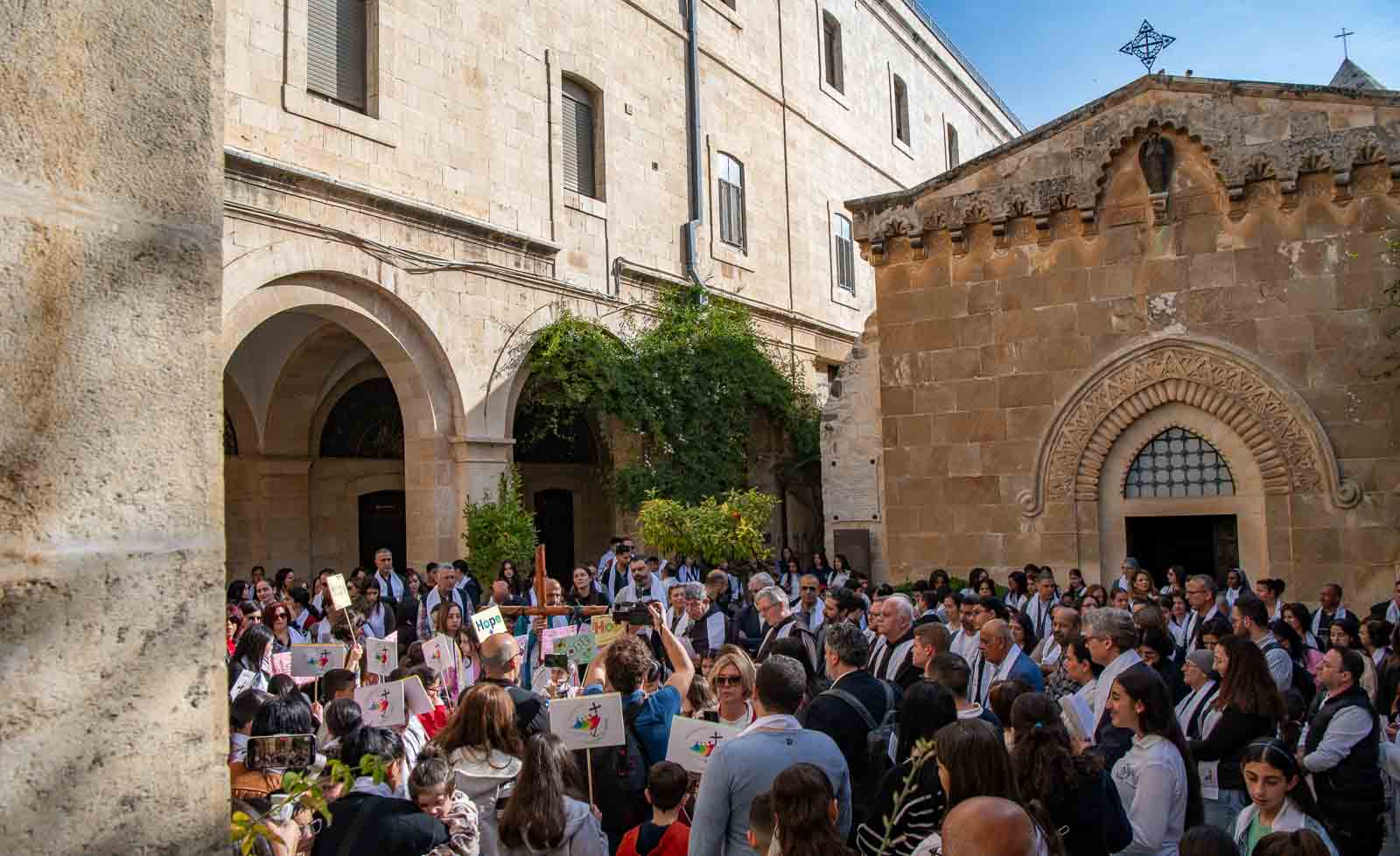 "പ്രത്യാശ" എന്ന വാക്ക് വിവിധ ഭാഷകളിൽ ആലേഖനം ചെയ്ത പോസ്റ്ററുകൾ നിരവധി വിദ്യാർത്ഥികൾ തയ്യാറാക്കിയിരുന്നു. കിഴക്കൻ പഴയ ജെറുസലേം നഗരത്തിലൂടെയുള്ള കുരിശിന്റെ വഴി പ്രാര്ത്ഥനായാത്രയില് ജെറുസലേമിലെ 13 ക്രിസ്ത്യൻ സ്കൂളുകളിൽ നിന്നുള്ള വിദ്യാർത്ഥികളും അധ്യാപകരും രക്ഷിതാക്കളും പങ്കെടുത്തു. വിശുദ്ധ നാടിന്റെ കസ്റ്റോഡിയൻ ഫാ. ഫ്രാൻസെസ്കോ പാറ്റൺ കുരിശിന്റെ തിരുശേഷിപ്പുക്കൊണ്ട് നല്കിയ അവസാന ആശീർവാദത്തോടെയാണ് പ്രാര്ത്ഥനയ്ക്കു സമാപനമായത്. നോമ്പുകാലത്ത് ജെറുസലേമിലെ കത്തോലിക്കാ സ്കൂളുകളുടെ നേതൃത്വത്തില് കുരിശിന്റെ വഴി പ്രാര്ത്ഥന നടത്തുന്നതു വര്ഷങ്ങളായി തുടരുന്ന പതിവാണ്.