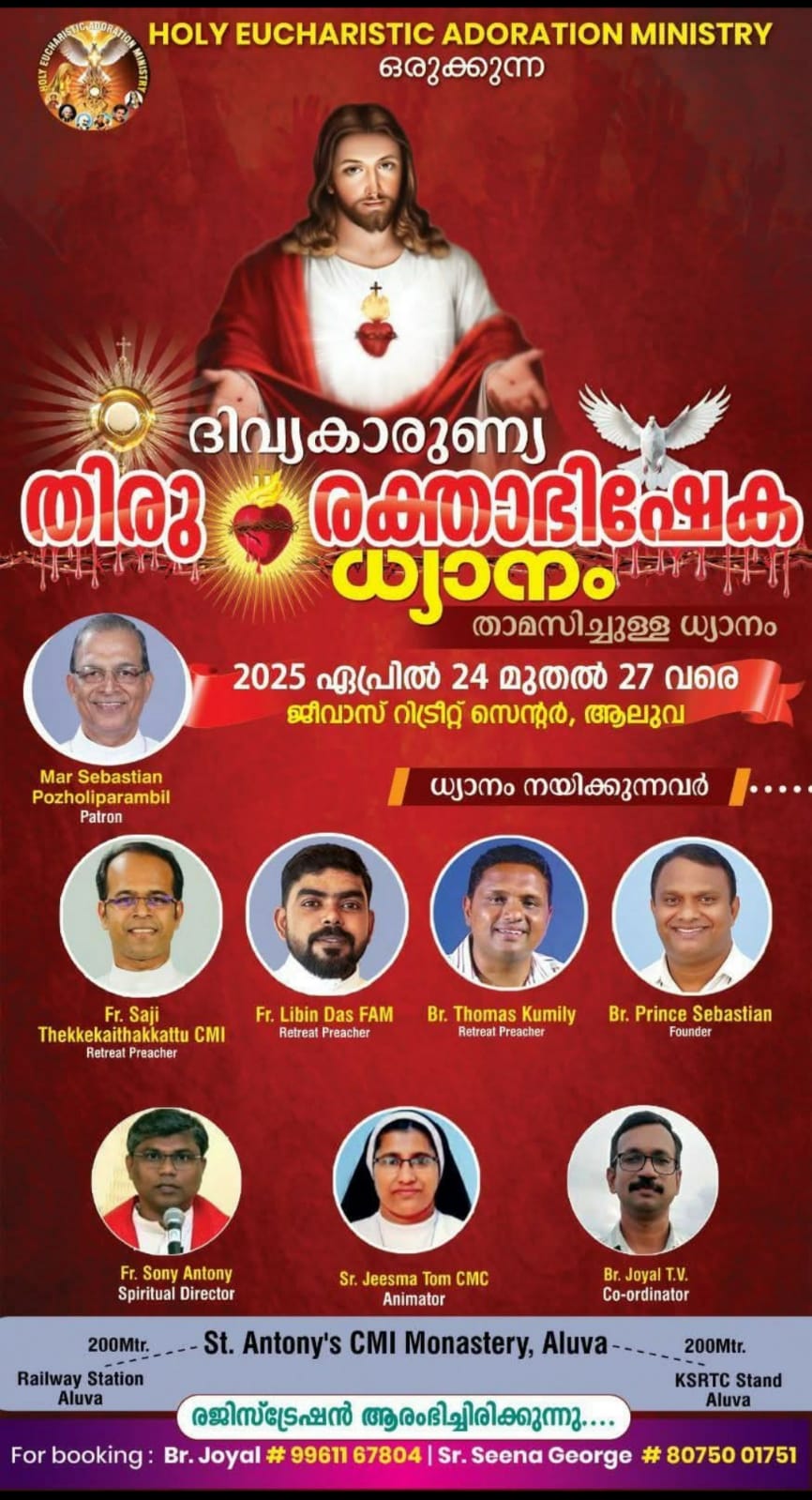 ആലുവയില് ഏപ്രിൽ 24 മുതൽ 27 വരെ തിരുരക്താഭിഷേക ധ്യാനം