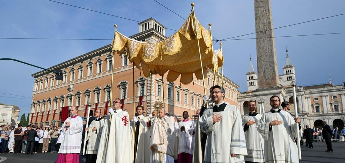 "പോഷണം നൽകുകയും പരാജയപ്പെടുകയും ചെയ്യാത്ത അപ്പം; ഭക്ഷിക്കാവുന്നതും എന്നാൽ തീർന്നുപോകാത്തതുമായ അപ്പം. വാസ്തവത്തിൽ, വിശുദ്ധ കുർബാന രക്ഷകന്റെ യഥാർത്ഥവും ഗണ്യവുമായ സാന്നിധ്യമാണ്" - വിശുദ്ധ അഗസ്റ്റിൻ ഓര്മ്മിപ്പിച്ചത് ഇപ്രകാരമാണെന്നു പാപ്പ പറഞ്ഞു. റോം രൂപതയുടെ അധ്യക്ഷന് എന്ന നിലയില് തന്റെ കത്തീഡ്രൽ ദേവാലയമായ വിശുദ്ധ ജോൺ ലാറ്ററൻ ബസിലിക്കയിൽ വിശുദ്ധ കുർബാനയർപ്പിച്ച പാപ്പ, തുടർന്ന് മേരി മേജർ ബസിലിക്കയിലേക്ക് കാൽനടയായി ദിവ്യകാരുണ്യ പ്രദിക്ഷണവും നടത്തി. ആയിരങ്ങളാണ് ദിവ്യകാരുണ്യത്തെ അനുഗമിച്ചത്. സമാപനമായി വിശുദ്ധ കുർബാനയുടെ ആശീർവാദം സ്വീകരിച്ചത് ഇരുപത്തിനായിരത്തിനു മുകളിൽ വിശ്വാസികളായിരിന്നു.