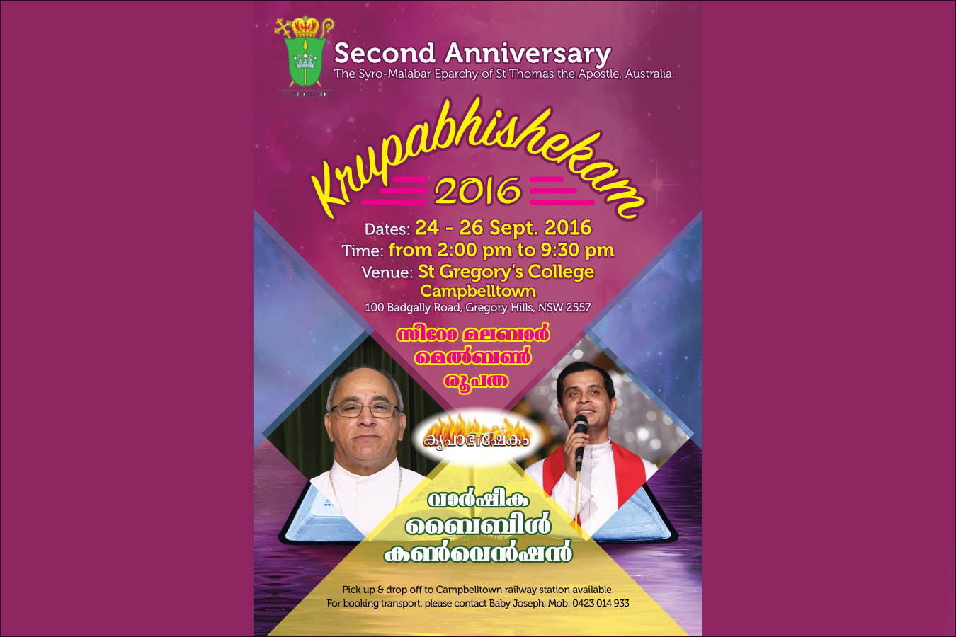 മെല്ബണ് ബിഷപ്പ് മാര് ജോണ് പനംതോട്ടത്തില് ചടങ്ങിൽ അധ്യക്ഷനായി. രൂപതയുടെ പ്രഥമ ബിഷപ്പ് മാര് ബോസ്കോ പുത്തൂര്, എപി പോളിൻ റിച്ചാർഡ്, എംപി സിൻഡി മകലേയ്, കോൺസുലർ ജനറൽ ഓഫ് ഇന്ത്യ ഡോ. സുശീൽ കുമാർ, പള്ളോറ്റൈൻ കോളജ് ചെയർമാൻ ഗാവിൻ റോഡറിക്, എംപി ഇവാൻ വാൾട്ടേഴ്സ് തുടങ്ങിയവർ ആശംസകളറിയിച്ച് സംസാരിച്ചു. ഫിനാൻസ് ഓഫിസർ ഡോ. ജോൺസൺ ജോർജ് നന്ദി പ്രകാശനം നടത്തി.
