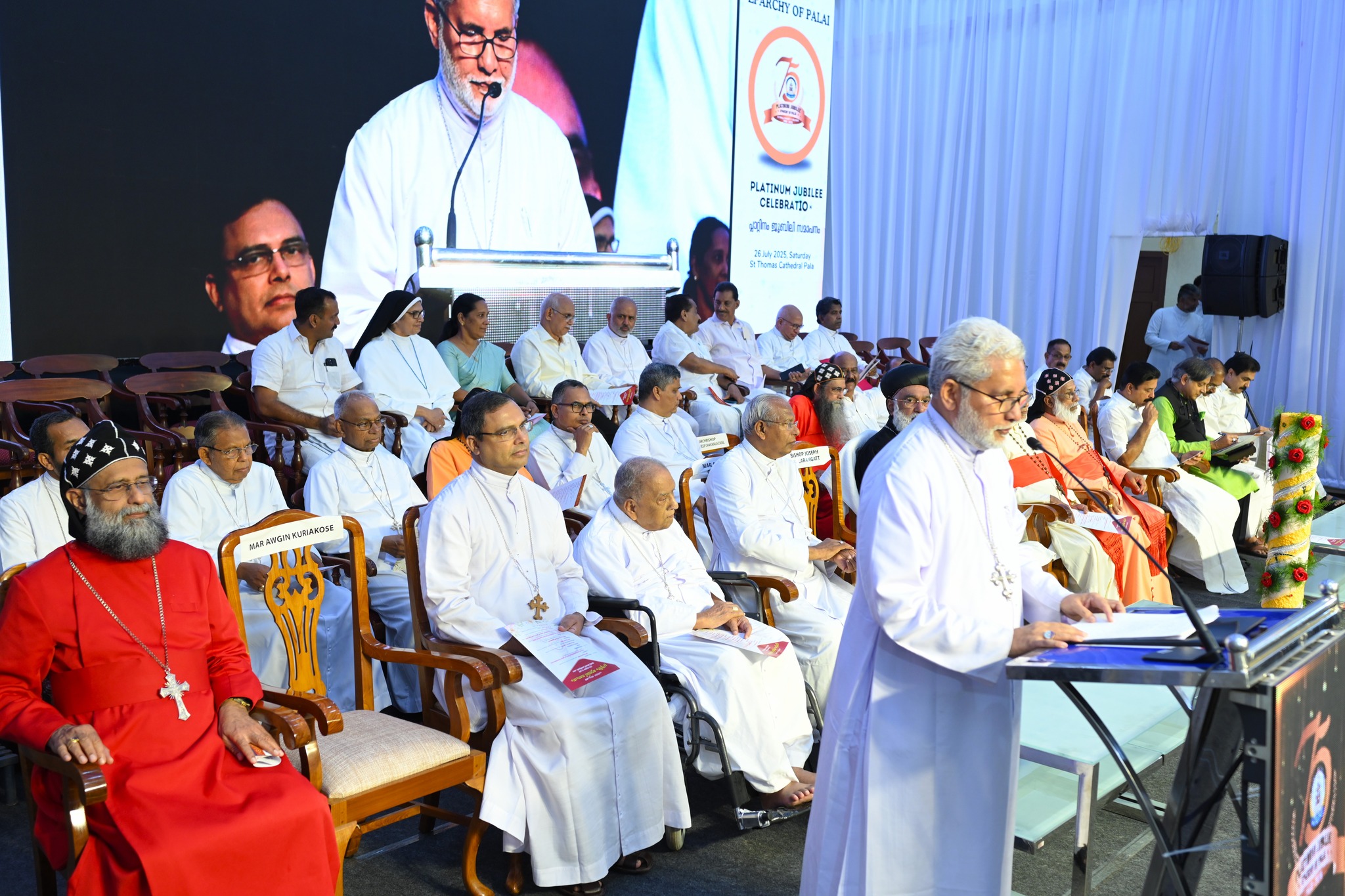 പാലാ ബിഷപ്പ് മാർ ജോസഫ് കല്ലറങ്ങാട്ട് ആമുഖസന്ദേശം നൽകി. സിബിസിഐ പ്രസിഡന്റ് ആർച്ച് ബിഷപ്പ് മാർ ആൻഡ്രൂസ് താഴത്ത്, ആർച്ച് ബിഷപ്പ് മാർ ജോസഫ് പാംപ്ലാനി, ആർച്ച് ബിഷപ്പ് മാർ തോമസ് തറയിൽ, സിറിൽ മാർ ബസേലിയോസ് മെത്രാപ്പോലീത്ത, ഔഗിൻ മാർ കുര്യാക്കോസ് മെത്രാപ്പോലീത്ത, കുര്യാക്കോസ് മാർ സേവേറിയോസ് വലിയ മെത്രാപ്പോലീത്ത, ജോഷ്വാ മാർ നിക്കോദിമോസ് മെത്രാപ്പോലീത്ത, മാർ ജോസഫ് പള്ളിക്കാപറമ്പിൽ, മാർ ജോസ് പുളിക്കൽ, മാർ ജോസഫ് സ്രാമ്പിക്കൽ, മാർ ജേക്കബ് അങ്ങാടിയത്ത്, മാർ ജോസഫ് കൊല്ലംപറമ്പിൽ, ബിഷപ്പ് ഡോ. ജോസ് സെബാസ്റ്റ്യൻ തെക്കുംചേരിക്കുന്നേൽ, മാർ ജോർജ് രാജേന്ദ്രൻ, മാർ തോമസ് പാടിയത്ത്, ബിഷപ് ഡോ. സെൽവിസ്റ്റർ പൊന്നുമുത്തൻ, മന്ത്രി റോഷി അഗസ്റ്റിൻ, എംപിമാരായ ശശി തരൂർ, ജോസ് കെ. മാണി, ഫ്രാൻസിസ് ജോർജ്, ആന്റോ ആന്റണി, എംഎൽഎമാരായ സണ്ണി ജോസഫ്, മാണി സി. കാപ്പൻ, മോൻസ് ജോസഫ്, സെബാസ്റ്റ്യൻ കുളത്തുങ്കൽ, പാസ്റ്ററൽ കൗൺസിൽ ചെയർമാൻ ഡോ. കെ.കെ. ജോസ്, എസ്എബിഎസ് പ്രൊവിൻഷ്യൽ സുപ്പീരിയർ സിസ്റ്റർ മരീന ഞാറക്കാട്ടിൽ, പി.സി. ജോർജ്, ഷീബ ബിനോയി പള്ളിപ്പറമ്പിൽ എന്നിവർ പ്രസംഗിച്ചു. മുഖ്യവികാ രി ജനറാൾ മോൺ. ജോസഫ് തടത്തിൽ കൃതജ്ഞത രേഖപ്പെടുത്തി.