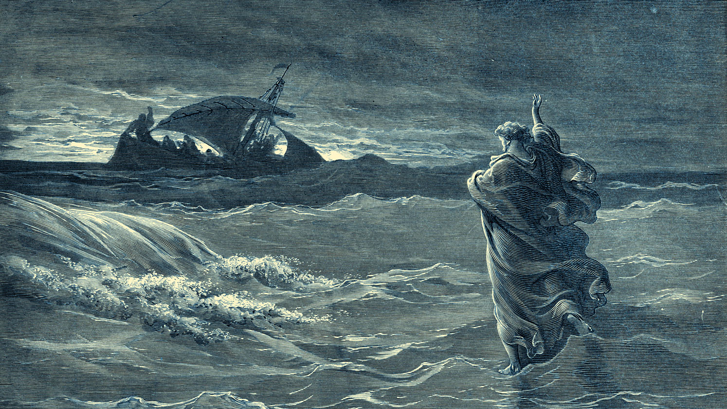 പരീക്ഷണത്തിന്റെ വഞ്ചിയില് കയറി മറുകരയ്ക്കു പോകാന് ഈശോ ശിഷ്യരോടാവശ്യപ്പെട്ടു. വിഷമതകളെ വിജയകരമായി തരണം ചെയ്യാന് അവര് പരിശീലിക്കുന്നതിനായിരുന്നു ഇത്. എന്നാല് പ്രലോഭനങ്ങളാകുന്ന തിരമാലകളുടെയും പ്രതികൂലമായ കാറ്റിന്റെയും സാന്നിദ്ധ്യത്താല് ഈശോയെ കൂടാതെ മറുകര കടക്കാന് കഴിയാതെ ശിഷ്യന്മാര് കുഴങ്ങി. തീരമണയാന് ശിഷ്യരാല് സാധ്യമായതെല്ലാം അവര് ചെയ്തെന്നു മനസ്സിലാക്കിയ വചനമായ ദൈവം അവരോട് അനുകമ്പ തോന്നി കടലിനുമീതേ നടന്ന് അവരുടെയടുത്തെത്തി. തിരമാലകളോ കാറ്റോ അവിടുത്തേക്ക് ബാധകമായിരുന്നില്ല (Commentary on Matthew 11.5).