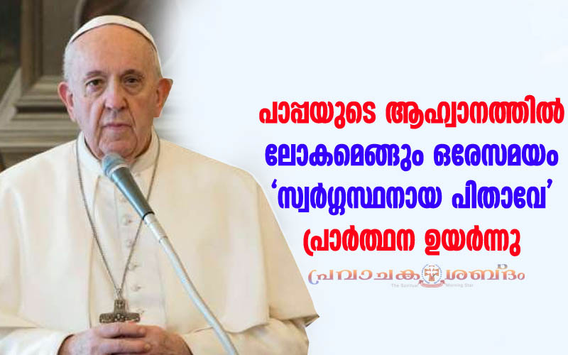 “നിങ്ങള് ഇങ്ങനെ പ്രാര്ത്ഥിക്കുവിന്. പിതാവേ അങ്ങയുടെ നാമം പൂജിതമാകണമേ. അങ്ങയുടെ രാജ്യം വരേണമേ; അന്നന്നു വേണ്ട ആഹാരം ഓരോ ദിവസവും ഞങ്ങള്ക്ക് നല്കണമേ; ഞങ്ങളുടെ പാപങ്ങള് ഞങ്ങളോട് ക്ഷമിക്കണമേ. എന്തെന്നാല് ഞങ്ങളുടെ കടക്കാരോട് ഞങ്ങളും ക്ഷമിക്കുന്നു. ഞങ്ങളെ പ്രലോഭനത്തില് ഉള്പ്പെടുത്തരുതേ” (ലൂക്കാ 11:2-4).