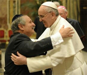 പിതാവ് ബ്യൂണസ്അയേർസിൽ ആർച്ചുബിഷപ്പായിരുന്നപ്പോൾ മുതൽ, അദ്ദേഹം ക്രൈസ്തവ - യഹൂദ ബന്ധങ്ങളുടെ സമന്വയത്തിനു വേണ്ടി ശ്രമിച്ചിരുന്നു. അക്കാലത്ത് അദ്ദേഹം, തന്റെ യഹൂദ സുഹൃത്ത് അബ്രഹാം സ്ക്കോർക്ക എന്ന അർജന്റീനയിലെ റാബിയുമൊത്ത്, "On Heaven and Earth" എന്ന പുസ്തകം രചിക്കുകയുണ്ടായി. അതിൽ ,ഇരുവരും ചേർന്ന് ക്രൈസ്തവ - യഹൂദ ജീവിത വീക്ഷണങ്ങൾ പങ്കുവെച്ചിരിന്നു. ഇവരുടെ സാമൂഹ്യവും മതപരവുമായ ചർച്ചകളിൽ 31- എണ്ണം അർജന്റീനയിലെ ദൃശ്യ മാധ്യമങ്ങൾ സംപ്രേക്ഷണം ചെയ്തിട്ടുമുണ്ട്.