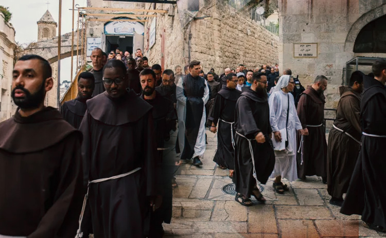 കല്ലുകള് നിറഞ്ഞ വഴി.... ഭാരമുള്ള കുരിശ്.... ക്ഷീണിച്ച ശരീരം... വിറയ്ക്കുന്ന കാലുകള്... അവിടുന്നു മുഖം കുത്തി നിലത്തു വീഴുന്നു.... മുട്ടുകള് പൊട്ടി രക്തമൊലിക്കുന്നു... യൂദന്മാര് അവിടുത്തെ പരിഹസിക്കുന്നു... പട്ടാളക്കാര് അടിക്കുന്നു... ജനക്കൂട്ടം ആര്പ്പുവിളിക്കുന്നു..... അവിടുന്നു മിണ്ടുന്നില്ല.