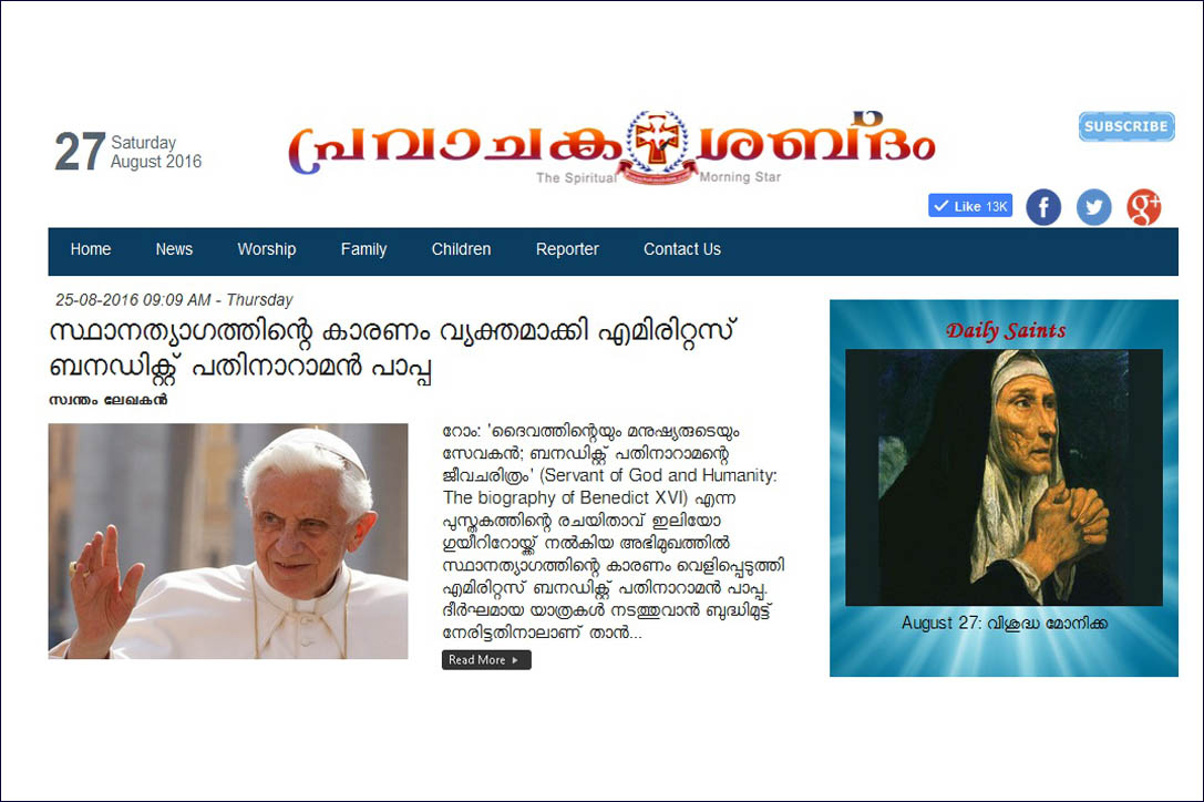 അഞ്ചുലക്ഷം വൈദികരിൽ രണ്ടോ മൂന്നോ പേർ വീഴുമ്പോൾ അത് ഉയർത്തിക്കാട്ടി സഭാമാതാവിനെ വിമര്ശിക്കുന്നവര് ദൈവശാസ്ത്രജ്ഞനായ ഫാ. കാള് റാനര് പറഞ്ഞത് ഓര്മ്മിക്കുന്നത് നന്നായിരിക്കും- "സഭ ചുളിവുകളും ചാലുകളുമുള്ള ഒരു വൃദ്ധയാണ്; എന്നിരുന്നാലും അവള് എന്റെ അമ്മയാണ്. സ്വന്തം അമ്മയെ ഒരുത്തനും തല്ലുകയില്ല". പ്രിയപ്പെട്ട സഹോദരങ്ങളെ നമുക്കു ചിന്തിക്കാം- നാം ചുളിവുകളുള്ള അമ്മയെ തല്ലുന്നവരാണോ?