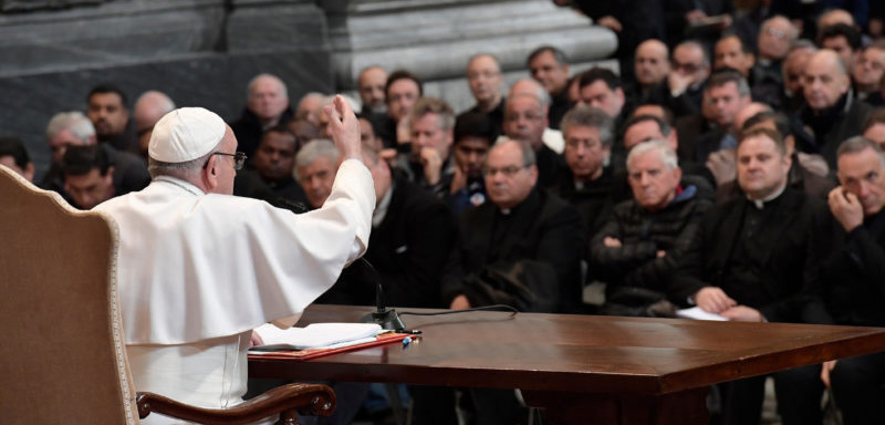 തങ്ങള് പുരോഹിതരാണെന്ന ചില വൈദികരുടെ 'ഗര്വ്വ്' സഭയെ ബാധിച്ചിരിക്കുന്ന പിശാചാണെന്നും ഇത്തരം ഗര്വ്വുകള്ക്ക് വിധേയരാകുന്നത് സാധാരണക്കാരായ വിശ്വാസികളാണെന്നും പാപ്പ തുറന്നു പറഞ്ഞു. ഒരു വിമര്ശനം എന്നതിലുപരി ദൈവവിളിയുടെ അതീവ പ്രാധാന്യത്തെ പറ്റിയായിരിന്നു മാര്പ്പാപ്പയുടെ ഈ ഓര്മ്മപ്പെടുത്തല്. ഫ്രാന്സിസ് പാപ്പയുടെ കീഴില് പതുക്കെയാണെങ്കിലും സഭാ ഭരണഘടനയില് മാറ്റങ്ങള് സംഭവിക്കുന്നുണ്ട്. റോമന് കൂരിയായിലും പരിഷ്കാരങ്ങള് നടന്നുവരുന്നു.