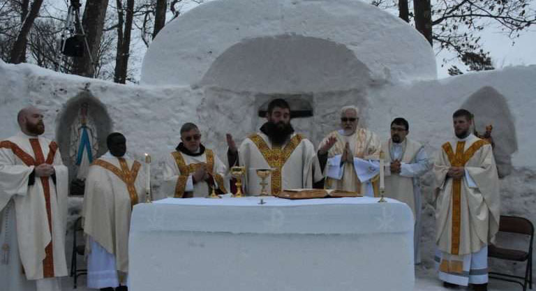 മഞ്ഞു കൊണ്ട് ബലിപീഠം തീർത്ത് വിശുദ്ധ കുർബ്ബാനയുടെ പ്രാധാന്യം ലോകത്തോടു പ്രഘോഷിക്കുകയാണ് ഈ വിദ്യാർത്ഥികൾ