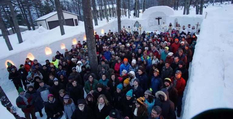ദേവാലയം നിർമ്മിക്കുന്നത് എല്ലാ വർഷവും നടന്നു വരുന്ന ഒരു ചടങ്ങാണ്. അഞ്ഞൂറ് ടൺ തൂക്കം വരുന്ന മഞ്ഞുകട്ട കുന്നിൻ മുകളിലേക്ക് വലിച്ചു കയറ്റി നിർമ്മിച്ചിരിക്കുന്ന അൾത്താരയുടെ മുകൾ ഭാഗമാണ്, ഇത്തവണ പണിതുയർത്തിയ ദേവാലയത്തിന്റെ സവിശേഷത. നൂറ്റി നാല്പത് അംഗങ്ങളാണ് കഴിഞ്ഞ വർഷം നിർമ്മിച്ച കപ്പേളയിലെ ദിവ്യബലിയിൽ പങ്കെടുത്തത്.