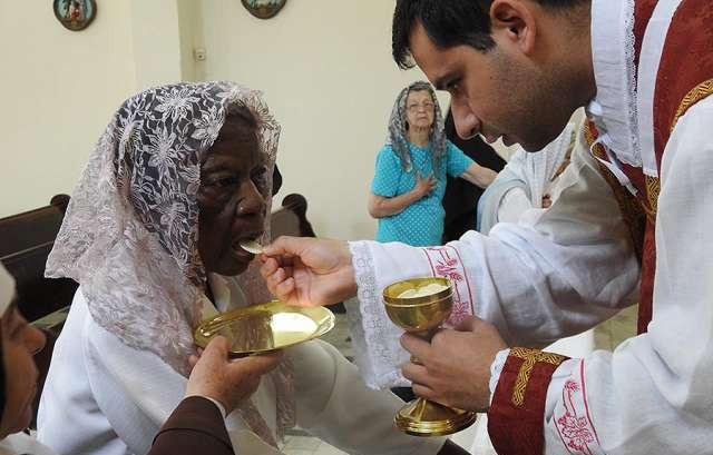 തന്റെ അമ്മയെ മാമോദീസാ മുക്കുവാന് ഫാദര് ഹെസൂക് ഷ്രോഫ് തയാറെടുക്കുന്നു