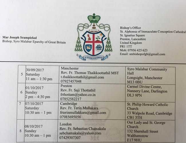 പ്രസ്റ്റണ്: ഗ്രേറ്റ് ബ്രിട്ടണ് സീറോ മലബാര് രൂപതയില് സ്ത്രീകളുടെ മഹത്വവും പങ്കും അംഗീകരിക്കപ്പെടുന്നതിനും സ്ത്രീ സഹജമായ വിവിധ കഴിവുകള് സഭയുടെ വളര്ച്ചയില് പ്രയോജനപ്പെടുത്തുന്നതിനുമായി രൂപീകൃതമായ ‘എപ്പാര്ക്കിയല് വിമന്സ് ഫോറ’ത്തിന്റെ ആദ്യ റീജിയണല്, രൂപതാ ഭാരവാഹികളുടെ തിരഞ്ഞെടുപ്പ് സെപ്തംബര് 10 മുതല് ഒക്ടോബര് 8 വരെ നടക്കും. രൂപതയിലെ നൂറ്റി എഴുപതില്പരം വരുന്ന എല്ലാ വി. കുര്ബാന കേന്ദ്രങ്ങളില് നിന്നും പ്രസിഡന്റ്, വൈസ് പ്രസിഡന്റ്, സെക്രട്ടറി, ജോ. സെക്രട്ടറി, ട്രഷറര്, എക്സിക്യുട്ടീവ് മെമ്പേഴ്സ് എന്നിവരായി തിരഞ്ഞെടുക്കപ്പെടുന്നവരില് നിന്നാണ് രൂപതാ, റീജിയണല് ഭാരവാഹികളെ കണ്ടെത്തുന്നത്.