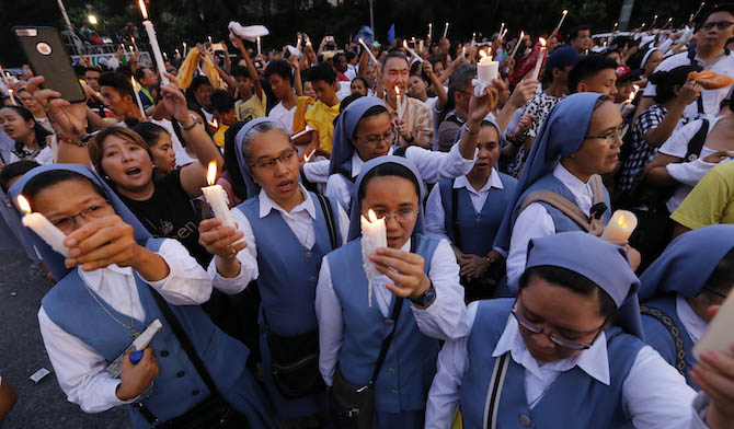 മനില: മയക്കുമരുന്ന് വേട്ടയുടെ പേരിലുള്ള കൊലപാതക പരമ്പരയും മാഫിയ സംഘർഷങ്ങളും അവസാനിക്കുന്നതിനായി പ്രാര്ത്ഥനായത്നവുമായി ഫിലിപ്പീന്സ് കത്തോലിക്ക സമൂഹം. ഇതിന്റെ ഭാഗമായി നവംബർ അഞ്ചിന് തലസ്ഥാന നഗരിയായ മനിലയിലെ കത്തോലിക്ക ദേവാലയത്തിൽ നിന്നു ആരംഭിച്ച മെഴുകുതിരി പ്രദക്ഷിണത്തിൽ നൂറുകണക്കിന് വിശ്വാസികളാണ് പങ്കെടുത്തത്. റാലിയ്ക്ക് ബിഷപ്പുമാരും വൈദികരും സന്ന്യസ്തരും നേതൃത്വം നൽകി. പ്രദക്ഷിണത്തിന് മുന്നോടിയായി നടന്ന ദിവ്യബലിയിൽ ദേശീയ മെത്രാൻ സമിതി അധ്യക്ഷൻ ആർച്ച് ബിഷപ്പ് സോക്രട്ടീസ് വില്ലേഗാസ് സന്ദേശം നൽകി.