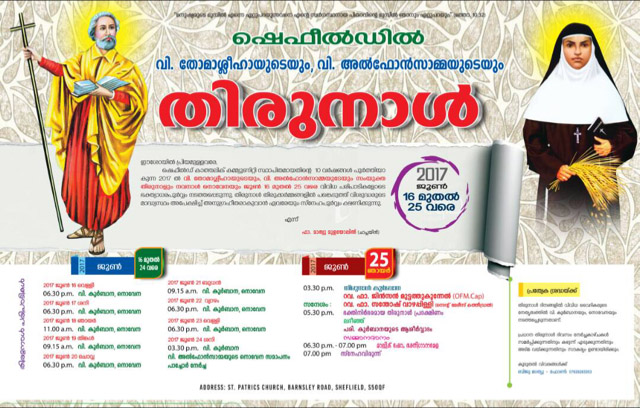 ഷെഫീൽഡ് കാത്തലിക് കമ്മ്യൂണിറ്റിയുടെ നേതൃത്വത്തിൽ നടത്തപ്പെടുന്ന നോയമ്പുകാല വാർഷിക ധ്യാനം നാളെ (9/3/18 വെള്ളി )മുതൽ സെന്റ് പാട്രിക് പള്ളിയിൽ ആരംഭിക്കും. തലശ്ശേരി അതിരൂപത വൈദികനും വചന പ്രഘോഷകനും യുകെ യിൽ ഡിവൈൻ ധ്യാനകേന്ദ്രങ്ങളിലെ ആത്മീയ ശുശ്രൂഷകനുമായ റവ.ഫാ.ടോമി എടാട്ടേൽ നയിക്കുന്ന ധ്യാനം നാളെ വെള്ളി വൈകിട്ട് ആരംഭിച്ച് ഞായറാഴ്ച്ച വൈകിട്ട് സമാപിക്കും. ശനി, ഞായർ ദിവസങ്ങളിൽ കുട്ടികൾക്കും പ്രത്യേക ക്ലാസുകൾ ഉണ്ടായിരിക്കും. ഡോ.ഫെൽസി രാജേഷ് കുട്ടികളുടെ ക്ലാസുകൾ നയിക്കും.