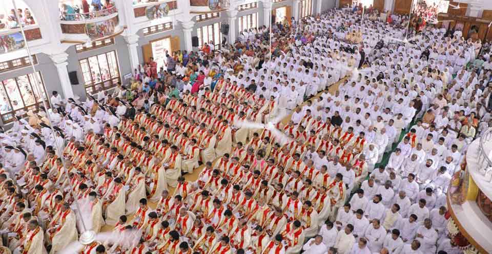 ഇന്നലെ ഉച്ചകഴിഞ്ഞ് ഒന്നരയ്ക്കു വാഴത്തോപ്പ് സെന്റ് ജോര്ജ് ഹയര് സെക്കന്ഡറി സ്കൂളില്നിന്നു പ്രദക്ഷിണത്തോടെയാണ് ചടങ്ങുകള് ആരംഭിച്ചത്. പ്രദക്ഷിണം ആരംഭിച്ചതോടെ കത്തീഡ്രലിലെ മണി മുഴങ്ങി. അന്പതു യുവജനങ്ങള് പേപ്പല് പതാകയുമായും അന്പപത് അമ്മമാര് മുത്തുക്കുടകളുമായി പ്രദക്ഷിണത്തിനു മുന്നില് അണിനിരന്നു. ഇവര്ക്കു പിന്നില് തിരുവസ്ത്രങ്ങളണിഞ്ഞ 300 വൈദികരും നിലകൊണ്ടു. പ്രദിക്ഷണം പാരിഷ് ഹാളിനു മുന്നിലെത്തിയപ്പോള് തിരുവസ്ത്രമണിഞ്ഞ മെത്രാന്മാര് അണിനിരന്നു. ഇതിന് പിന്നിലാണ് നിയുക്ത മെത്രാന് മാര് ജോണ് നെല്ലിക്കുന്നേല് നിലകൊണ്ടത്.