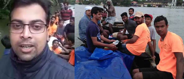 വെള്ളപൊക്കം ബാധിച്ച പ്രദേശത്തൂടെ തോണിയില് യാത്ര ചെയ്യവേ ഒറ്റപ്പെട്ടു കിടക്കുന്ന വയോധികയായ അമ്മയുടെ അവസ്ഥ ആരായുന്നതും സഹായവുമായി ഉടന് മടങ്ങിയെത്താമെന്നുള്ള വാഗ്ദാനവും ഫേസ്ബുക്കില് പോസ്റ്റ് ചെയ്ത വീഡിയോയില് കാണാവുന്നതാണ്. കണ്ടംകരിയിലെ സെന്റ് ജോസഫ് ദേവാലയത്തിന്റെ നേതൃത്വത്തിലാണ് അദ്ദേഹം രക്ഷാപ്രവര്ത്തനങ്ങള് ഏകോപിപ്പിക്കുന്നത്.
