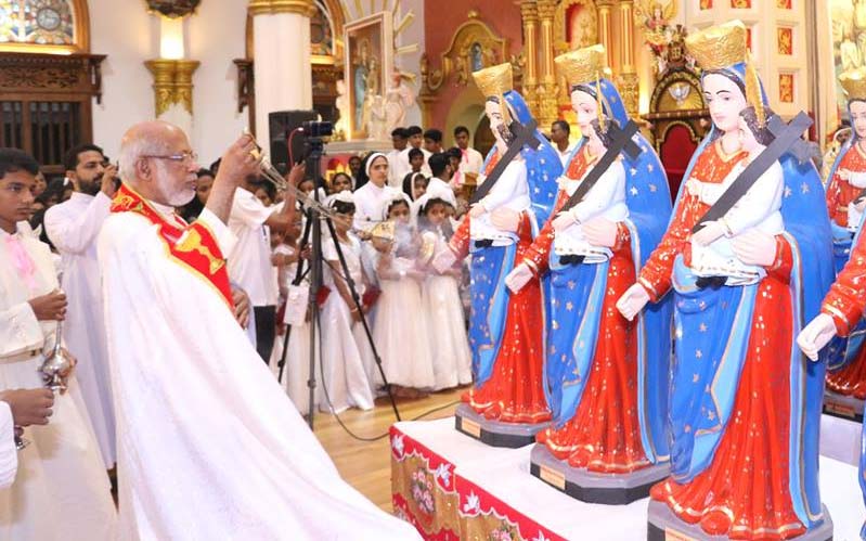 വൈകീട്ട് നടന്ന ഫൊറോനയിലെ വൈദികരുടെ സമ്മേളനത്തിലും തുടര്ന്ന് ദേവാലയ യോഗത്തിലും മേജര് ആര്ച്ച് ബിഷപ്പും പാലാ രൂപതാധ്യക്ഷനും പങ്കെടുത്തു. ഇന്നു രാവിലെ 8.30ന് ഇടവകയിലെ വിവിധ ഭക്തസംഘടന അംഗങ്ങളുടെ യോഗത്തില് മേജര് കര്ദ്ദിനാള് പങ്കെടുത്ത് സന്ദേശം നല്കും. 10ന് കര്ദ്ദിനാളിന്റെ മുഖ്യകാര്മ്മികത്വത്തില് ആഘോഷമായ വിശുദ്ധ കുര്ബാന നടക്കും. മാര് ജോസഫ് കല്ലറങ്ങാട്ട്, ആര്ച്ച്പ്രീസ്റ്റ് റവ.ഡോ. ജോസഫ് തടത്തില്, സീനീയര് അസി.വികാരി ഫാ. കുര്യാക്കോസ് വെള്ളച്ചാലില്, അസി.വികാരിമാരായ ഫാ. ജോര്ജ് നെല്ലിക്കല്, ഫാ. മാത്യു വെണ്ണായപ്പിള്ളില്, ഫാ. തോമസ് കുറ്റിക്കാട്ട്, ഫാ. മാണി കൊഴുപ്പന്കുറ്റി, സ്പെഷ്യല് കണ്ഫെസര് ഫാ. ജോര്ജ് നിരവത്ത്, ദേവമാതാ കോളജ് വൈസ് പ്രിന്സിപ്പല് ഫാ. മാത്യു കവളമ്മാക്കല് എന്നിവര് സഹകാര്മികരാകും.